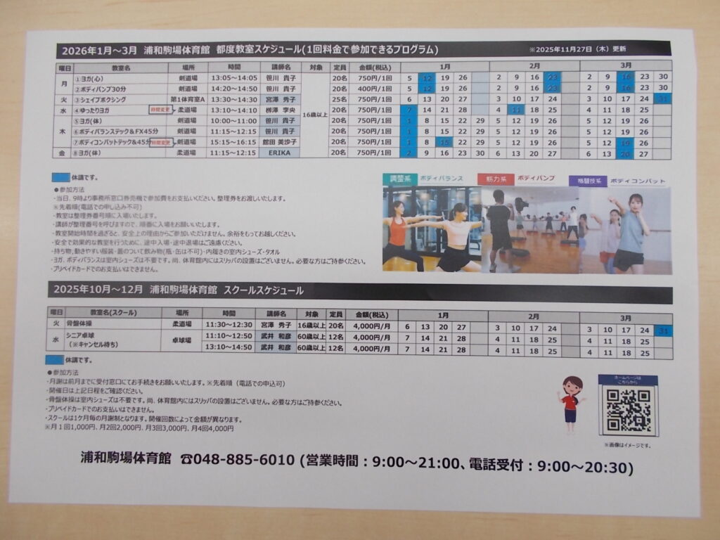 2026年1月より下記プログラムの開催時間が変更になります。お間違いのないようにお願いいたします。